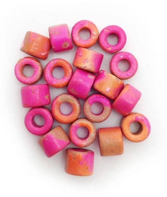 Keramik Zylinder pink orange gefleckt 6mm 20 Stück Keramikperlen