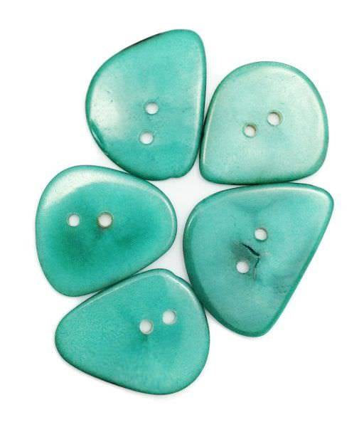 Bitte beachtet: Bei der Tagua oder Steinnuss handelt es sich um ein Naturprodukt, das nach dem Trocknen in Scheiben, Linsen, Perlen, Ringen etc. geschnitten wird bevor es dann eingefärbt wird. Die einzelnen Teile können Risse, Maserungen, braune Schalenreste etc. aufweisen. Dabei handelt es sich nicht um Fehler. Diese Charakteristika sind so gewollt und machen das ganz spezielle Design der Tagua-Produkte aus. Jedes einzelne Stück wird von Hand geschnitten, gebohrt und gefärbt. Kein Teil gleicht dem anderen. Die Produkte aus der Tagua, wie Perlen, sind verhältnismäßig schwer und fassen sich kühl an (das ist der Steincharakter). Wegen ihrer wunderschönen weißen Frucht wird die Tagua auch als Pflanzenelfenbein bezeichnet. Durch ihren kühl-glatten Griff und ihre schönen Formen lassen sich die Tagua-Produkte zu außergewöhnlichem und luxuriösem Schmuck verarbeiten. Größe/Maße/GewichtMaße: ca. 25mm x 20mm x 1,2mm Gewicht: ca. 6 Gramm Menge: 5 Stück Farbe: Aqua Form: Oval Anzahl Schnurlöcher: 2 Lochgröße: ca. 1,2mm Schnurlöcher befinden sich in der Mitte des Chips (Knopf).[TAB:Material]