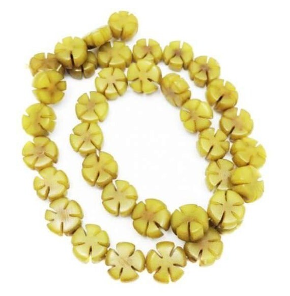 Buri Blumen oliv 12mm 1 Strang 36 Stück Buri Perlen