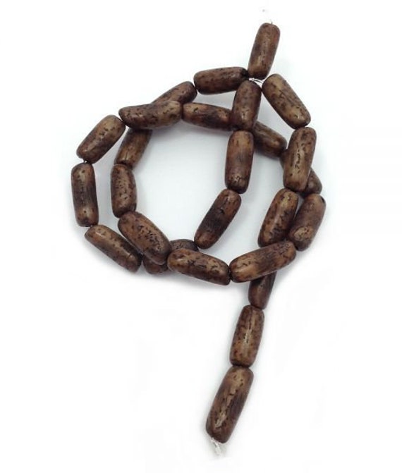 Der Strang ist 40cm lang und fasst ca. 24 Perlen. Jede Salwagtube ist ca. 16mm x 5mm groß. Das Schnurloch geht durch die gesamte Länge der Perle und hat einen Durchmesser von ca. 1,0mm. Salwag ist von Natur aus weiß, schwarz gesprenkelt. Durch die Farbe ist das schwarze Muster noch gut zu erkennen und macht das typische reizvolle Design von Salwagperlen aus.