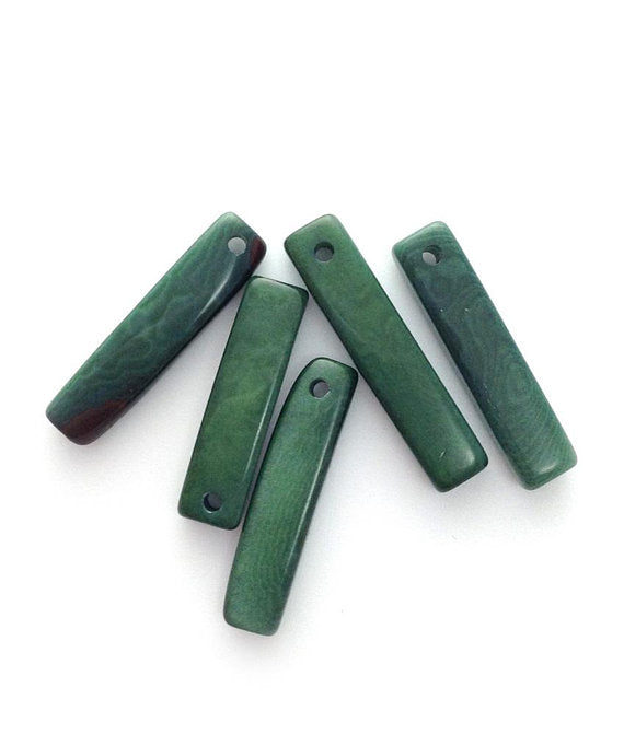 Tagua Rechtecke mittelgrün 19-28mm 5 Stück dünn Taguaperlen