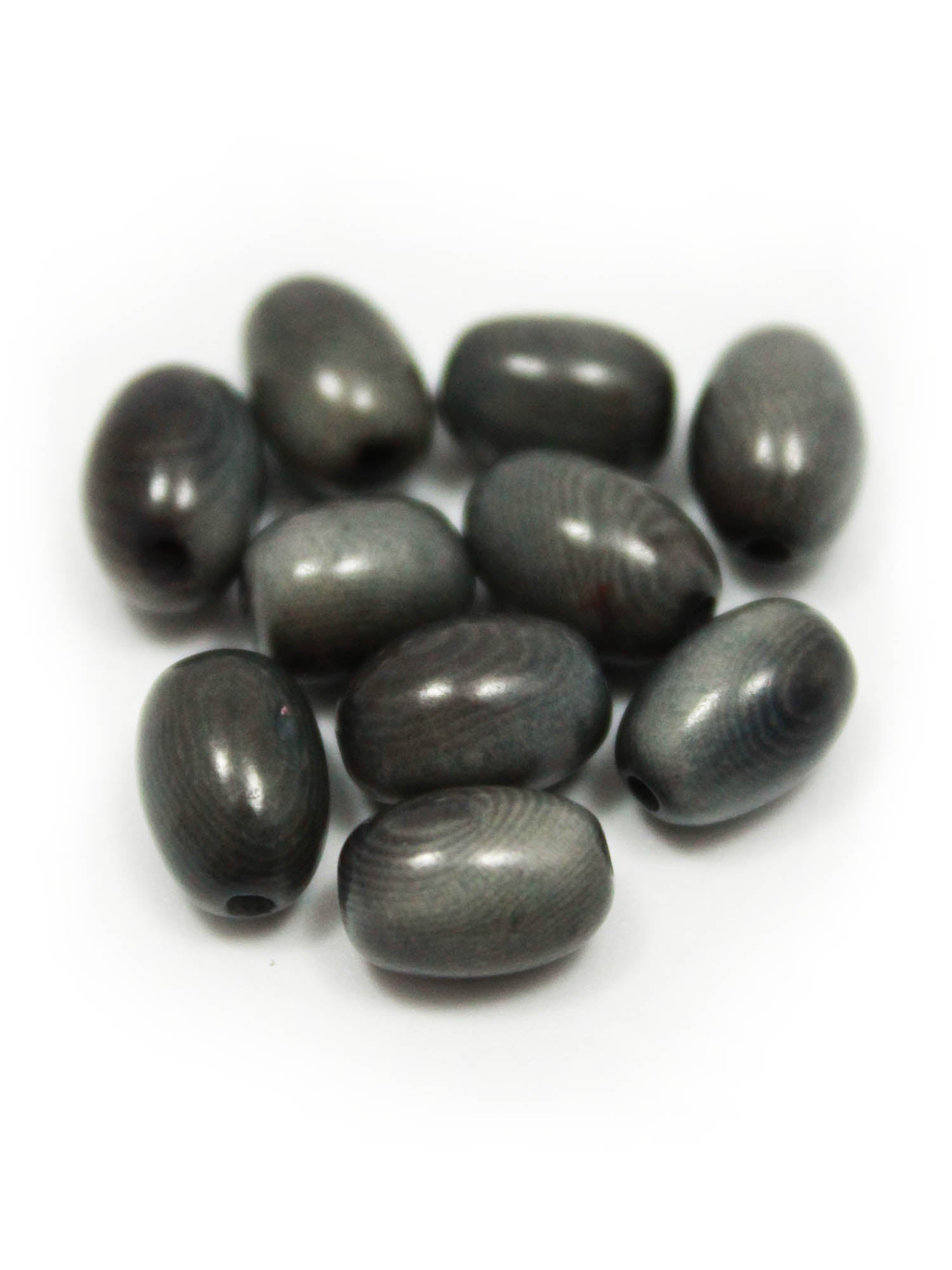 Ten gray tagua olives, 9mm long.