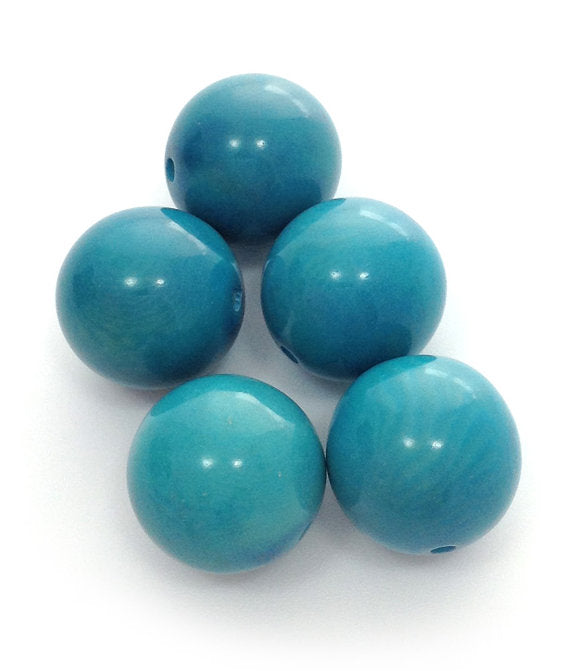 Five turquoise tagua beads, 17mm in size.