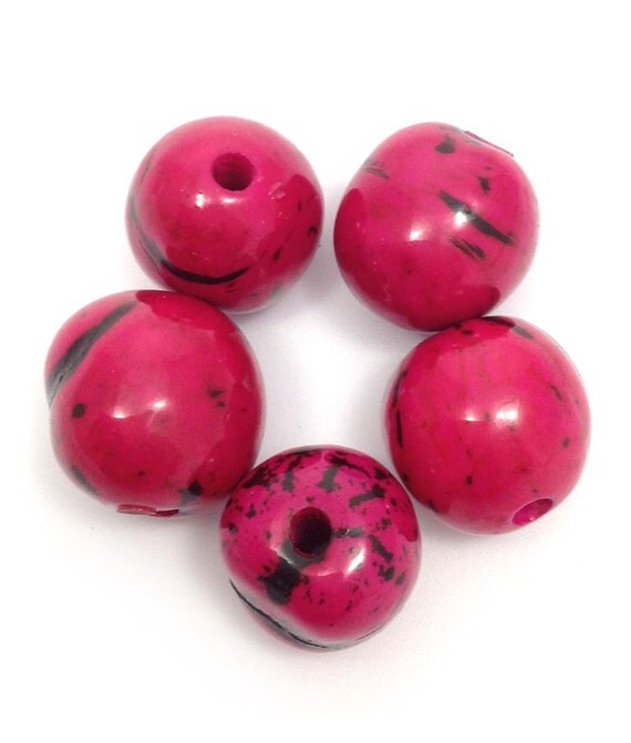 Five pink resin covered bombona seed beads from Colombia measuring approximately 22mm.