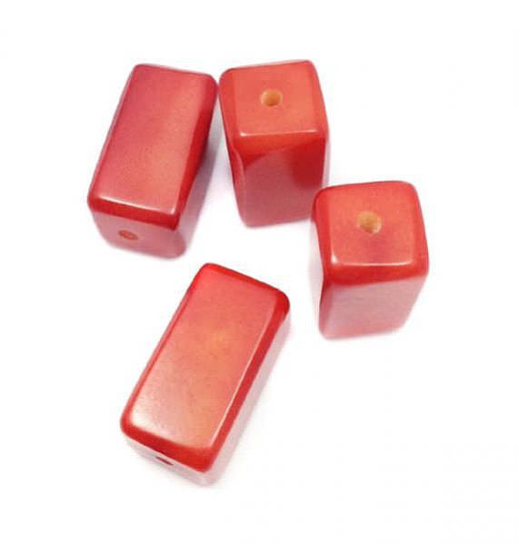 The tagua or stone nut is a natural product that, after drying, is cut into slices, lentils, beads, rings, etc. before it is then colored. The individual parts may have cracks, grains, brown remains of shells, etc. These are not errors. These characteristics are wanted and make up the very special design of the Tagua products. Every single piece is cut, drilled and colored by hand. No part is like the other.